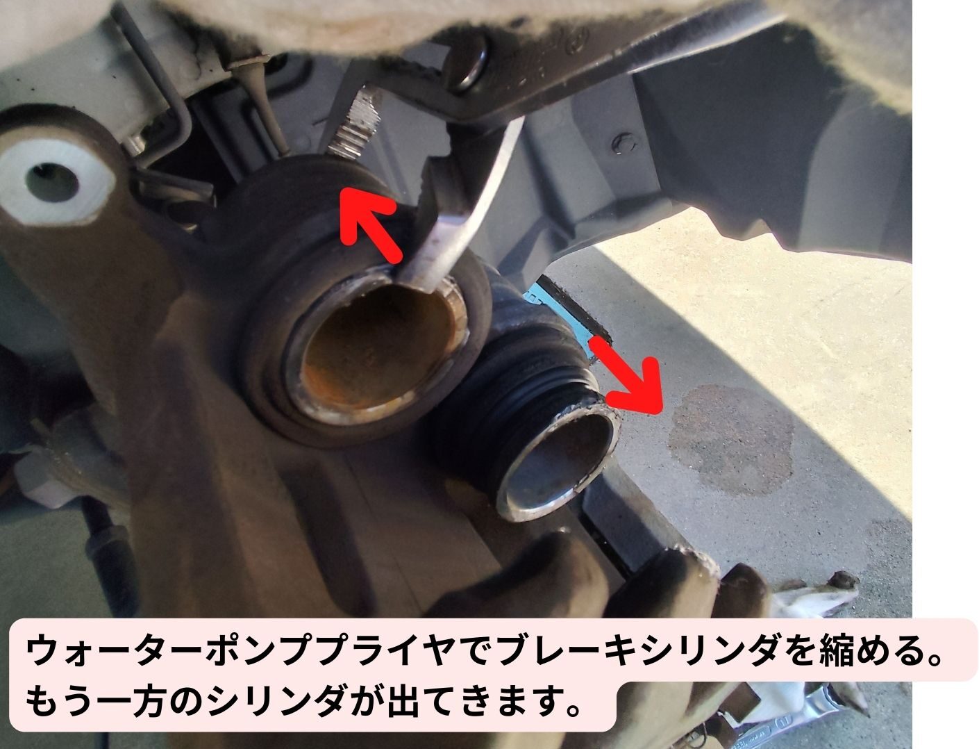 下写真位までシリンダが引っ込めば新品パッド装着可能です。