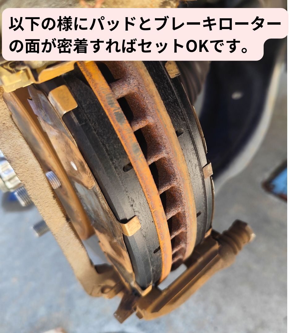 下写真の様にパッドがブレーキローターに密着すればパッドのセットはOKです。