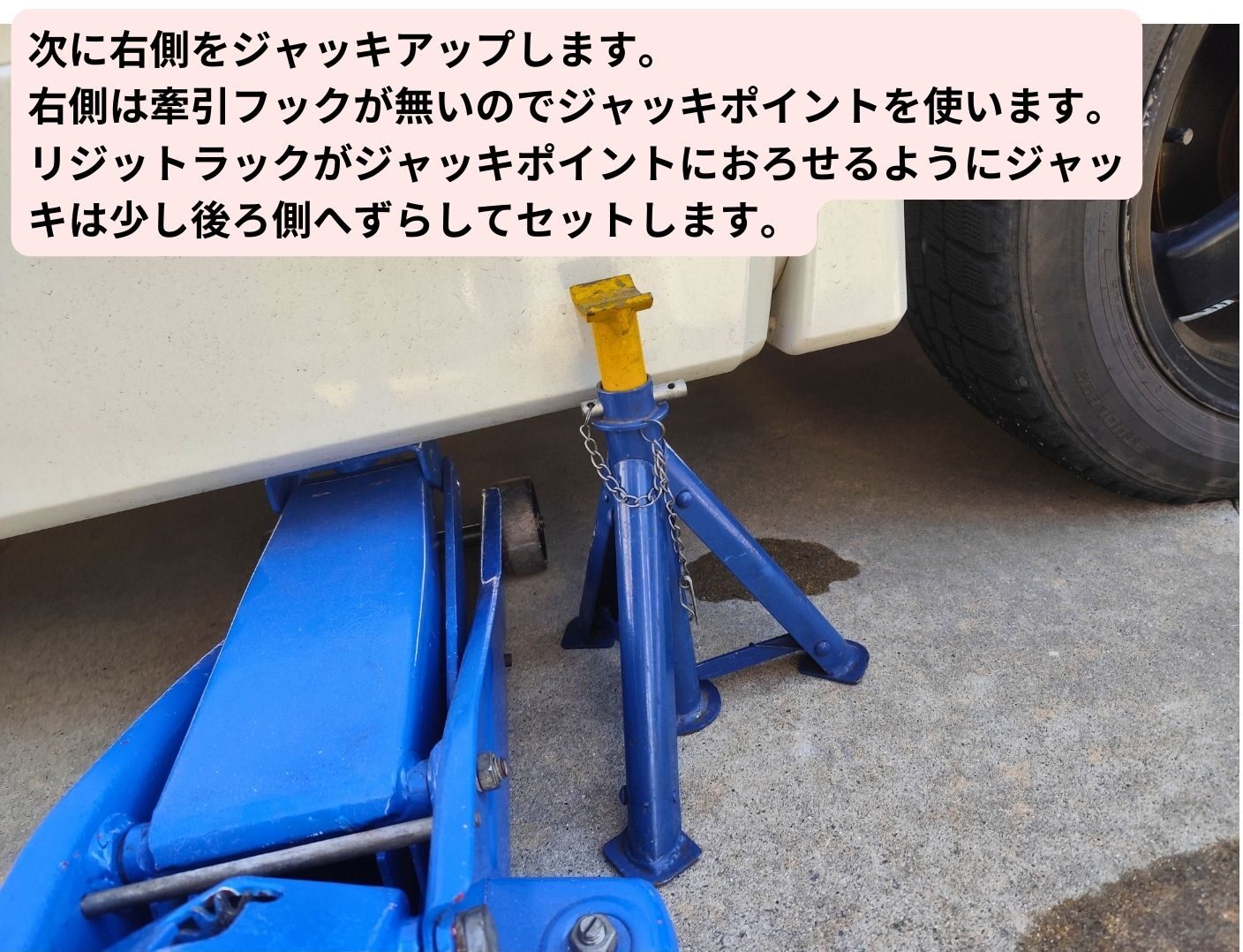 ジャッキアップしリジットラックをジャッキポイント下へセットします。